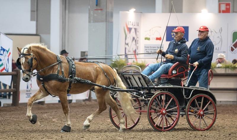 Per gli Haflinger invece abbiamo avuto il piacere di avere con noi vecchie conoscenze ormai rodate e new entry decisamente emozionanti. Emiliano Chiarlone e la sua pariglia con N – Vivienne e Gril del Centro Ippico Double C di Cairo Montenotte (SV) e il singolo del Presidente ANACRHAI Francesco Ramella col giovanissimo stallone di 4 anni Nanuk – G, che ci hanno fatto vedere l’Haflinger attaccato con 2 marathon veramente performanti.