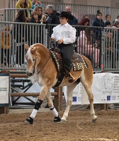 Anche il Calza’ Performance Horse di Arco (TN) ci ha regalato un precisissimo carosello western dando saggio della qualità che l’Haflinger può avere nelle discipline americane. Serena Calzà e Giacomo Gius con le loro Scalet e Pepsi sono stati all’altezza della aspettative, per buona pace del patron Romano! Abbiamo inoltre visto e sentito uno spettacolo portato dagli amici di Mozzanica (BG), Beppe, Chantal e Jessica.