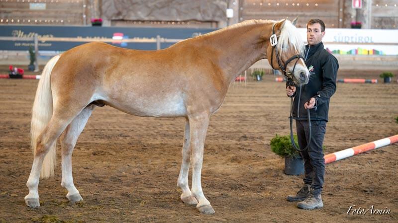 La sua riserva è una linea di sangue “W” ed è il n° 6 di catalogo, WASTOS – G – E allevato dal signor Gamper Egon di San Genesio è di proprietà di Prinoth Thomas di Ortisei (BZ), un figlio dello stallone WAARIS – Z e della fattrice ULMEA – G da MORE THAN WORDS. Il soggetto ha ottenuto un Molto Buono nei caratteri tipici di distinzione, un modello moderno con mantello dorato, una testa leggera e molto espressiva, Buono in armonia generale con una buona proporzione delle sue parti funzionali. Buono negli arti e negli appiombi con arti asciutti e proporzionati e con appiombi abbastanza corretti, Buono al passo e Molto Buono al trotto risultato molto energico e ampio.