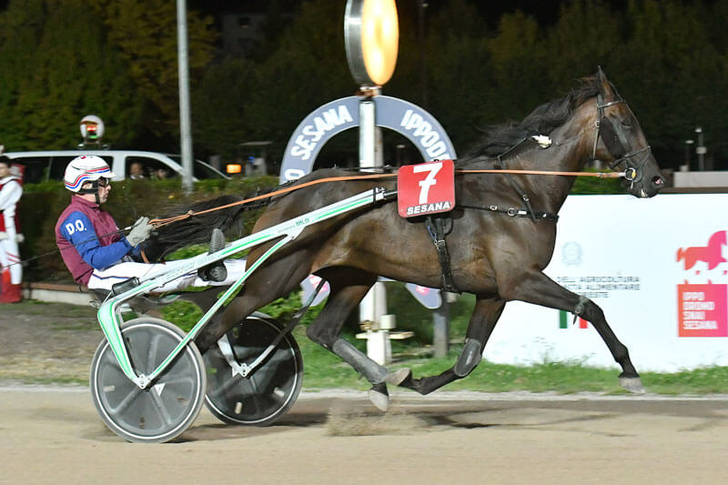 A dispetto del suo nome, Frivola Grif è cavalla estremamente concreta e affidabile: nel Premio Davide Baldi la cavalla di Marjo Natynki affidata a Giuseppe Lombardo jr centrava la terza vittoria nelle ultime quattro uscite al termine di un sicuro percorso di testa: dopo un chilometro in 1.14.5, la portacolori della Regina Horses salutava la compagna sull’ultima curva e vinceva netta a media di 1.14.2, mentre Favilla Amg rimontava per il secondo posto Ferdifan Dirisaia.