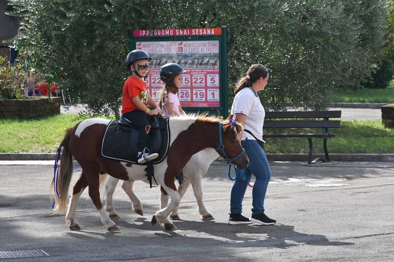 Oltre alla programmazione in pista l’Ippodromo Snai Sesana offre come sempre una serie di attività ludiche destinate ai bambini e alle famiglie a partire sempre dalle ore 15:15: al ‘Sesana Baby Village’ sono presenti i castelli gonfiabili, la pista di mountain bike, le postazioni del trucca bimbi e di balloon art. Oltre a questo c’è spazio per provare l’ebbrezza del ‘Battesimo della Sella’ sul cavallo e sul pony per vivere la prima monta in piena sicurezza, per i bambini e ragazzini tra i 3 e i 13 anni, accompagnati dagli istruttori e dagli stessi genitori. Per le famiglie e il pubblico sono attivi i servizi già compresi nel costo del ticket d’ingresso quali la manicure per le donne e di parrucchiere e barbiere per gli uomini nelle apposite aree coperte e con aria condizionata poste sotto la tribuna. Inoltre, sono sempre a disposizione i servizi di ristoro a partire dalle ore 14:00 con il Chiosco Bar a bordo circuito, con panini, snack e bevande, mentre il Ristorante Panoramico Sesana si trasforma in locale bar e per l’apericena sempre dalle ore 14:00 a fine giornata di corse.