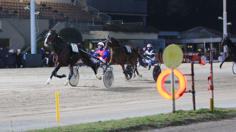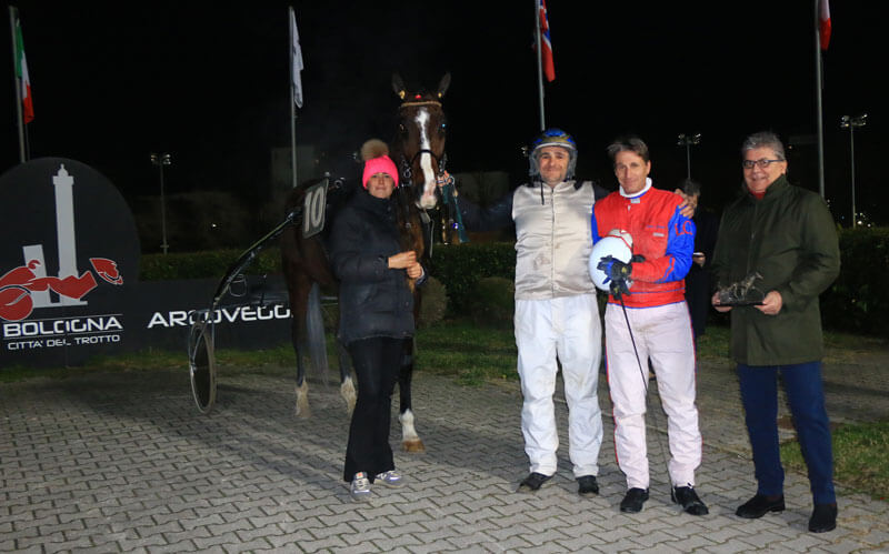 Il pomeriggio bolognese è stato aperto dalla vittoria del puledro veneto Ipnotic Men, guidato con professionale tempismo da Francesco Pettinari, l’allievo di Massimo Trevellin ha conquistato il comando e si è imposto di misura e media di 1.19.9 sul doppio chilometro nei confronti del favorito Illinois Rodi e del progredito Iston Q. Alla seconda arrivo al cardiopalma con Ilary Gams e Marco Stefani preminenti al fotofinish sui battistrada Ida Trio e Giuseppe De Filippis in 1.18.9 sui due giri di pista, al terzo posto a qualche lunghezza, Iside Jcp. Nastri e doppio chilometro alla terza con i cadetti in gara e Antonio Di Nardo a segno in qualità di catch per conto del fratello Ciro alle redini Flavio Jet, leader inavvicinabile al ragguaglio di 1.18.3 per i trascurati Frecciarossa Pizz e Flamenco Adri, poi replica per Antonio Di Nardo che ha dovuto sciorinare il meglio del proprio repertorio tattico per accompagnare al successo la sua Gardenia Of Brown che in 1.16.4 ha respinto gli attacchi di Gitana Bi mentre Guerra Dei Venti ha conquistato un meritato terzo posto. Miglio per femmine di 4 e 5 anni alla quinta e coast to coast vittorioso per Enjoy Dream, giumenta guidata e allenata dal giovane e promettente Claudio Monte che in 1.14.9 ha respinto con successo gli assalti finali portati da Fiamma Np, mentre Flor de Canela, a qualche lunghezza ha conquistato il terzo gradino del podio. Alla settima, ancora gentlemen in scena questa volta sul miglio e in partnership con anziani di eccellente categoria, con Chemar al primo posto dopo una lunga eclisse per la gioia del proprietario ed interprete Vittorio Bosia, media di 1.15.1 per il sette anni allenato da Andrea Guzzinati e podio completato da Capitano Pi e Estalba Pax. Chiusura con il triplo per Antonio Di Nardo che ha portato al primo successo in carriera l’attesa Gosheba, preminente in 1.16.1 su Giusetta Clan e Gabry Pan.