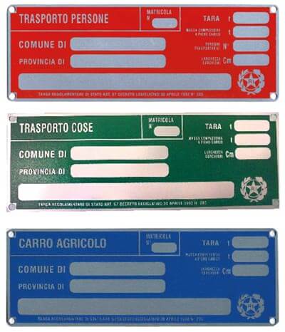 - veicoli destinati principalmente al trasporto di cose (targa verde);