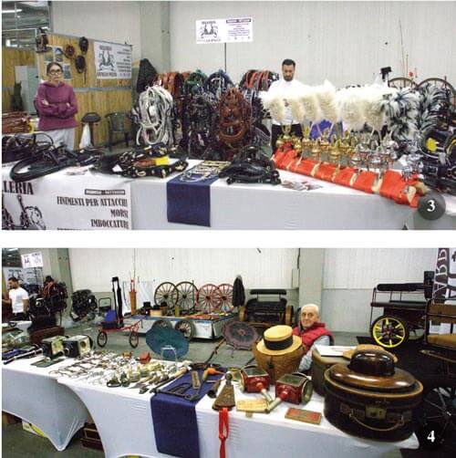 Visitatissima l’esposizione di finimenti della Selleria Cavallo Pazzo, proveniente dalla Campania: vari prodotti su misura per singolo, pariglia e tiri multipli.