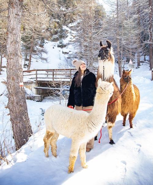Restando in Alta Valtellina, il contatto con gli animali assume forme diverse ma altrettanto coinvolgenti. Nei dintorni di Livigno, l’Agriturismo La Tresenda propone passeggiate indimenticabili in compagnia di lama e alpaca. Questi docili animali sudamericani accompagnano adulti e bambini lungo sentieri naturali, regalando un’esperienza insolita e rilassante, con la possibilità di scegliere trekking di diversa durata, concludendo la giornata con una dolce pausa a base di cioccolata calda o vin brulé.