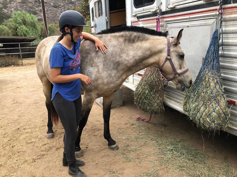 Quello che può essere stressante per un cavallo non lo è per un altro. Quando arriviamo con il cavallo in un posto nuovo, cerchiamo di stare accanto a lui mentre entra nel nuovo ambiente e aiutiamolo conducendolo nell’area a lui destinata, e che avremo preparato in modo appropriato prima di condurvi il cavallo. Sia essa a fianco del trailer, in un recinto o in un box, restiamo con lui mentre la esplora, e fino a quando abbiamo la sensazione che si senta a suo agio. Il modo migliore per vedere quando ciò accade è osservare se mangia, o se beve tranquillamente o se addirittura cerca di rotolarsi. Portare con noi il fieno che mangia abitualmente può essere d’aiuto al cavallo che mangiandolo troverà una cosa a lui familiare.