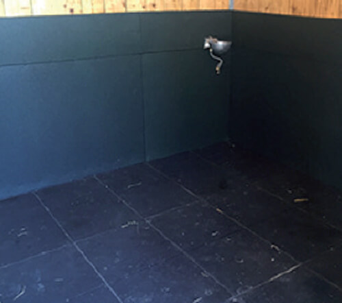La speciale superficie delle pavimentazioni Equigomma crea l’attrito necessario a impedire che il cavallo scivoli, il che lo rende sicuro per la posa non solo in box ma anche in aree di lavaggio e asciugatura dei cavalli, o più in generale in aree potenzialmente pericolose per la presenza di elevata umidità. La pulizia giornaliera è molto semplice, basta infatti asportare le fiandre come d’abitudine grazie a una pala o forca per pavimenti in gomma e risciacquare i pannelli, senza bisogno di sollevarli, con dell’acqua, eventualmente con l’aggiunta di disinfettanti (dosaggi come da indicazioni in scheda tecnica fornita con l’acquisto).