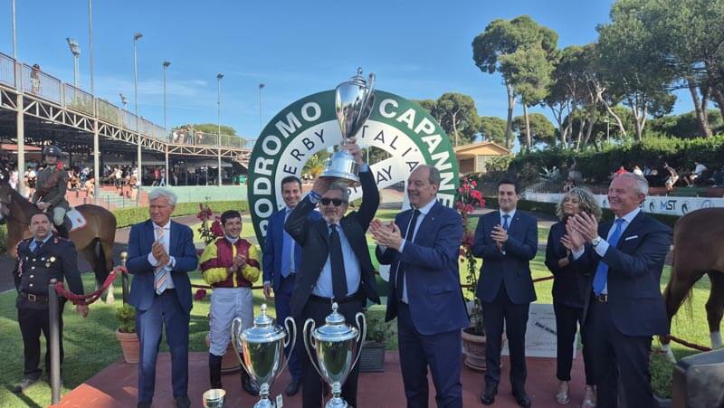 Al quarto, più discosto, Stern Markka.Evidente la soddisfazione del senatore Patrizio La Pietra, sottosegretario al Ministero dell’Agricoltura, della Sovranità Alimentare e delle Foreste (Masaf), per l’ennesima perfetta riuscita del Derby Day organizzato da Hippogroup Roma Capannelle: «Il 142° Derby Italiano di Galoppo Bet365Scores.it, oltre a rappresentare uno degli appuntamenti più importanti del calendario, è stata un’occasione per il grande pubblico di vivere un’atmosfera coinvolgente e partecipare a numerose attività che hanno reso il Derby Day un momento indimenticabile, non solo per gli appassionati di ippica. Lo spettacolo equestre “Uguali, Insieme, Liberi”, per viaggiare attraverso la storia e i valori della Repubblica Italiana, la sfilata di moda con i cappelli del progetto “Nero luce”, le attività per famiglie e bambini con animazione e spettacoli, la sfilata di moda, il concorso di eleganza hanno permesso di vivere un’esperienza a 360° legata al mondo del cavallo, arricchendone la fruibilità e l’attrattività, che è l’obiettivo che ci siamo posti come Masaf».