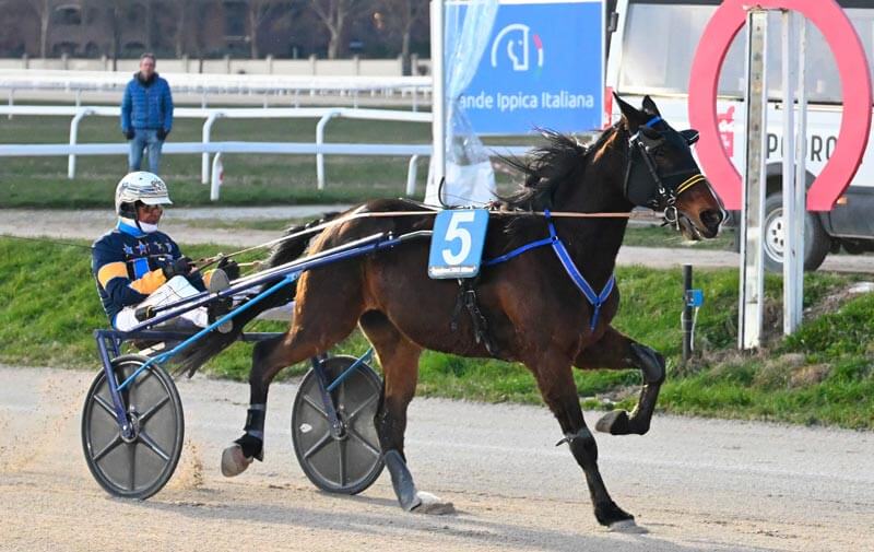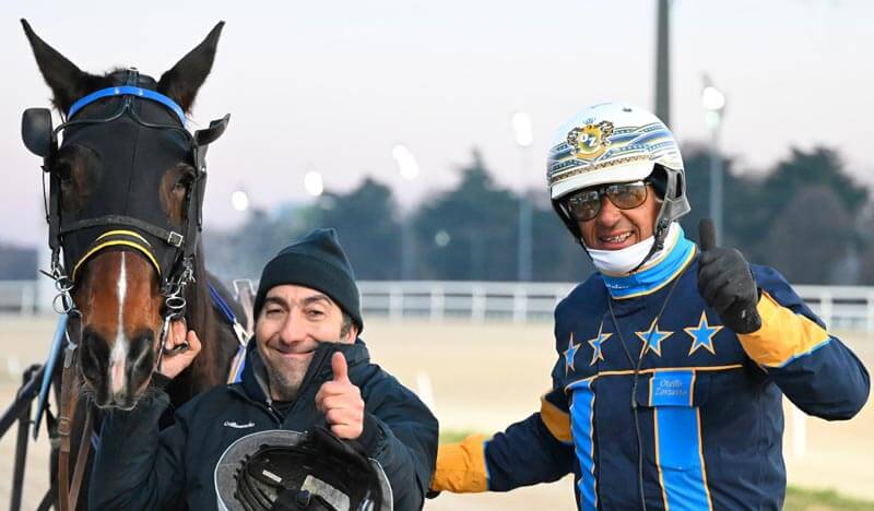 All’Ippodromo Snai San Siro di Milano si è disputata la 2^ giornata stagionale di trotto in un giovedì 8 gennaio con temperature rigide e cielo sereno. La riunione era incentrata sul Premio Allevamento La Trebisonda, Handicap per cavalli anziani affidati ai Gentlemen impegnati sulla distanza dei 1.600 a resa di metri per cavalli di categoria A/B/C/E. Era anche la corsa di maggior dotazione del pomeriggio dove lo specialista dello schema, e perfettamente ingaggiato allo start, non si lasciava sfuggire la ghiotta occasione: parliamo di Barnaba Baba con il proprietario Otello Zorzetto ai comandi in preparazione a una corsa in programma il 20 gennaio in Francia, a Vincennes, per il Prix de Saint Omer di cui è anche il campione uscente. Il cavallo di Alessandro Raspante dimostrava di essere pronto per la trasferta Oltralpe vincendo comodissimo, con un primo chilometro in 1.16 e chiusa veloce in 42, media finale di 1.14.7 senza mai un patema. Il penalizzato Chemar correva a sua volta alla grande, risalendo all’esterno nei 600 finali molto veloci per strappare la seconda moneta a Edelweiss Bass.