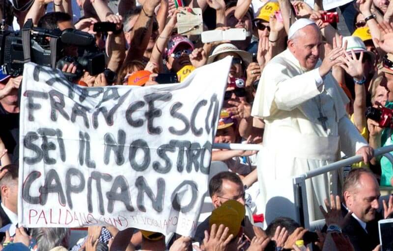 Sul suo ruolo di capitano aveva poi aggiunto sempre in quella occasione: «Ho sentito prima che mi avete nominato vostro capitano: vi ringrazio. Da capitano vi sprono a non chiudervi in difesa: non chiudetevi in difesa, ma a venire in attacco, a giocare insieme la nostra partita, che è quella del Vangelo». Papa Francesco in Sala Clementina l’11 maggio del 2019, in occasione del 75º anniversario della nascita del CSI, aveva salutato i dirigenti e gli operatori del CSI, richiamando gli sportivi ad una pratica da vivere tra gioco, fratellanza e gratuità. Per «lo sport per un agonismo che non faccia perdere il sorriso».