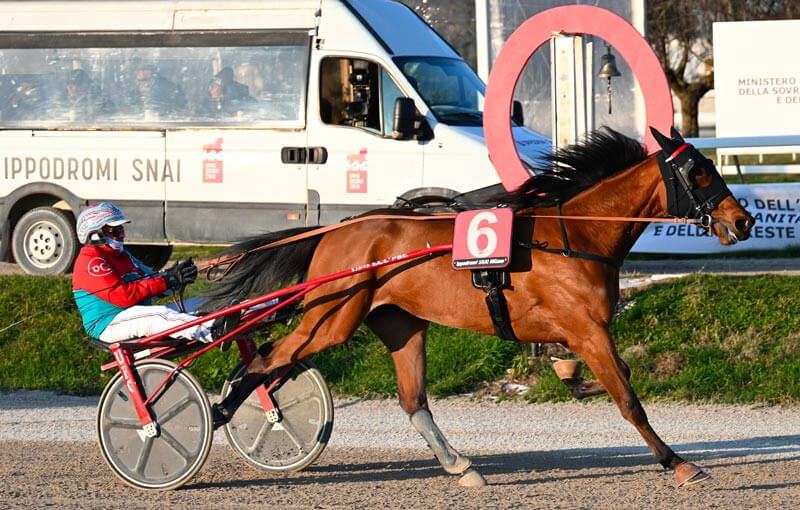 1.17.8 sui 2.140 metri. In sulky alla vincitrice Matteo Zaccherini, che così ha consolidato il suo feeling con la figlia di Nad Al Sheba (3-3). L’opposizione, anche a causa dei tanti errori, è mancata del tutto: al secondo posto è rimasto Go Plus Sm su Gold Prav.