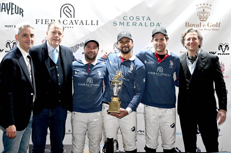 - I quattro giorni di grande Polo alle pendici del Monte Bianco si chiudono con la squadra veronese, alla sua prima partecipazione, vincitrice per 7-5 Grand Hotel Royal e Golf. Il francese Delfosse premiato come miglior giocatore, la capitana Heinemann è la migliore “amateur”. Nella finale per il terzo posto successo ai rigori di Ram su Courmayeur (5-4)