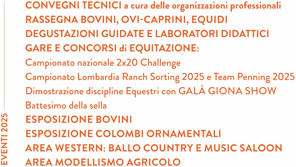 Rassegna regionale dell’Agricoltura, Macchinari e tecnologie, Equitazione, Zootecnia, Prodotti Tipici.