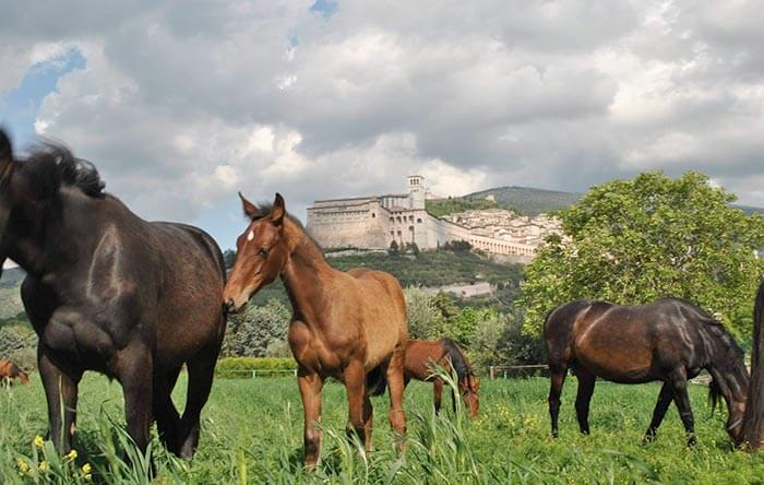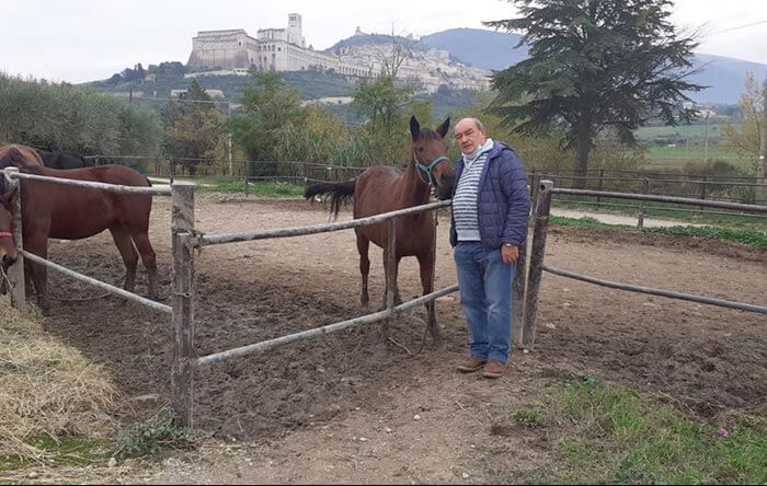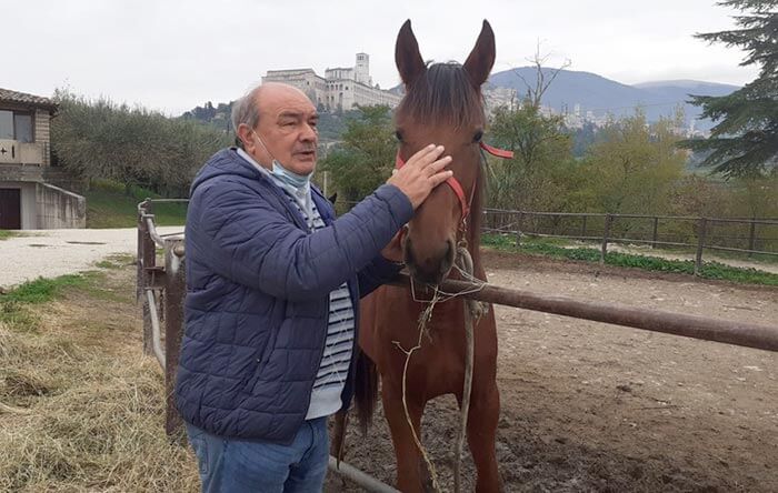 Assisi, mar 3 Nov ’20 – La scuderia dei “miracoli” e della Pace che invoca la protezione di San Francesco. “Il prossimo anno quando nasceranno i puledri con la lettera F, uno maschio, lo vorrei chiamare Francesco, in onore del Santo e del Papa ed avrà accanto la sigla Pax che da qualche anno contraddistingue i cavalli della nostro allevamento”. Un annuncio inedito, a dir poco mistico e suggestivo, soprattutto per il momento che il paese sta vivendo, quello pronunciato da, Sergio Carfagna, allevatore umbro di cavalli da trotto e titolare di uno degli allevamenti più importanti e qualificati a livello nazionale situato in una posizione “mozzafiato” ai piedi della Basilica di San Francesco, oltre 15 ettari dove i cavalli crescono all’aperto prima di approdare in pista con risultati più che lusinghieri. “Pax – spiega, Sergio Carfagna, 65 anni titolare, conosciuto ed apprezzato anche per aver fatto nascere e allevato la cavallina “bianca”, Via Lattea unica nel suo genere – è la sigla scelta dal nostro allevamento a partire dai nati con la Lettera A. Ogni anno i puledri sono contrassegnati da lettere con cui scegliere il loro nome e per evidenziare e sottolineare che ci troviamo ad Assisi, ai piedi della Basilica del Santo Patrono d’Europa, che ha fatto della ricerca della Pace, Pax appunto in latino, il proprio programma di vita, abbiamo deciso di affiancare al nome dei cavalli questa sigla internazionale che travalica i confini geografici e religiosi. La sigla – prosegue con orgoglio Sergio Carfagna – serve a tutti gli appassionati per riconoscere la provenienza dei puledri che ogni anno nascono. Per il prossimo anno abbiamo di deciso di chiamare un puledro che nascerà con il nome di Francesco in onore del Santo di Assisi e del Papa che proprio in questa terra ha contrassegnato le tappe fondamentali del percorso mondiale di pace e fratellanza fra i popoli.