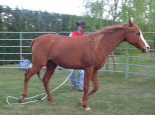 La prima cavalla era una morella di razza Morgana, quattro anni, con una ipersensibilità incredibile. Il suo atteggiamento faceva notare una spiccata paura per le persone dovuta ad una totale mancanza di fiducia nell’uomo. Il condizionamento al cibo nell’avvicinarsi all’uomo era più che evidente. La fuga sfrenata era la sua difesa ed il modo per ignorare qualsiasi pur minima richiesta.