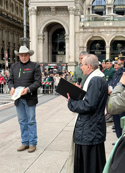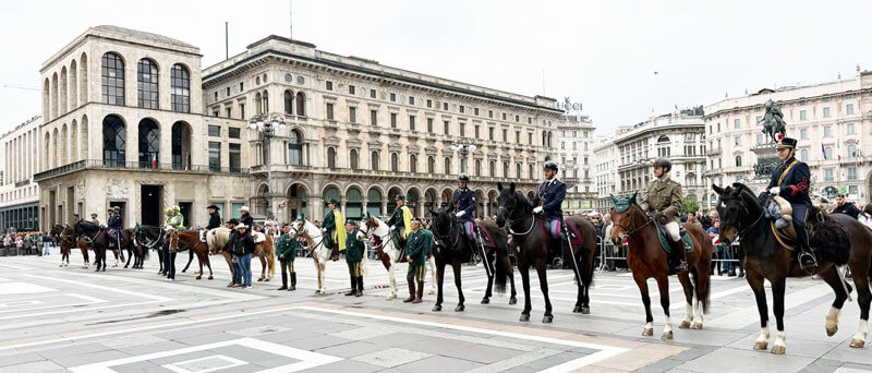 La rappresentanza autorizzata dei pellegrini a cavallo aderenti al Consorzio Cavalli di Varese, accompagnati dalle forze armate in divisa storica a cavallo come anche da Polizia di stato e Giacche verdi, in piazza del Duomo sono stati omaggiati dalle autorità locali civili e religiose e da una delegazione delle forze armate. Il loro viaggio proseguirà poi verso Roma, dove in occasione dell’Anno Santo Giubilare porteranno al Santo Padre un’icona fatta benedire per l’occasione.