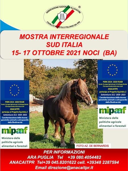 Organizzata nell’ambito di CAVALLI DI PUGLIA, il prossimo fine settimana sarà il momento della Mostra Interregionale Sud Italia del CAITPR che chiuderà il ciclo di manifestazioni autunnali di ANACAITPR che ha preso avvio ai primi di settembre e che precede il grande appuntamento di Fieracavalli dove la Razza celebrerà l’edizione 2021 della Mostra Nazionale e la Vetrina nazionale della Biodiversità 2021.