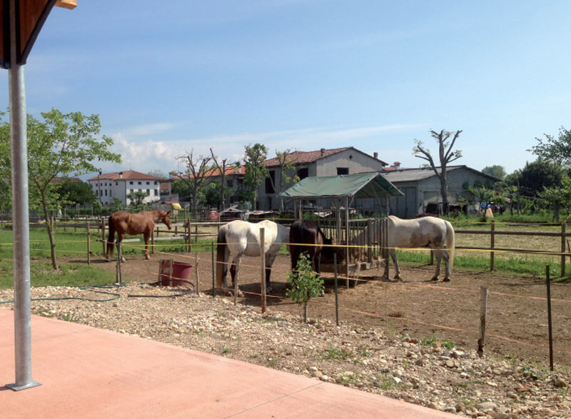 I cavalli che vivono all’esterno, ovvero in paddock , devono avere uno spazio coperto dove riposare protetti dal vento o dalle intemperie, ma soprattutto potersi proteggere dal sole insidioso d’estate.
