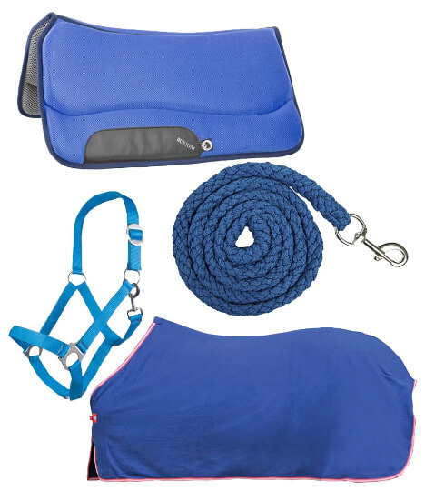 4 PEZZI – Monta western Sottosella western sympatex traspirante + coperta in pile + lunghina + cavezza in nylon. Coordinato in vari colori a scelta 25% di risparmio