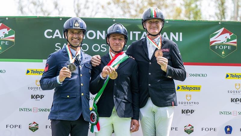 Sabato scorso, a Le Siepi di Cervia, oltre a salire sul podio tricolore hanno meritatamente guadagnato il pass per Piazza Siena Paolo Paini, medaglia d’oro in sella a Casal Dorato, Emilio Bicocchi, argento con Excaliburg e Fabio Brotto, bronzo su Doha delle Roane.