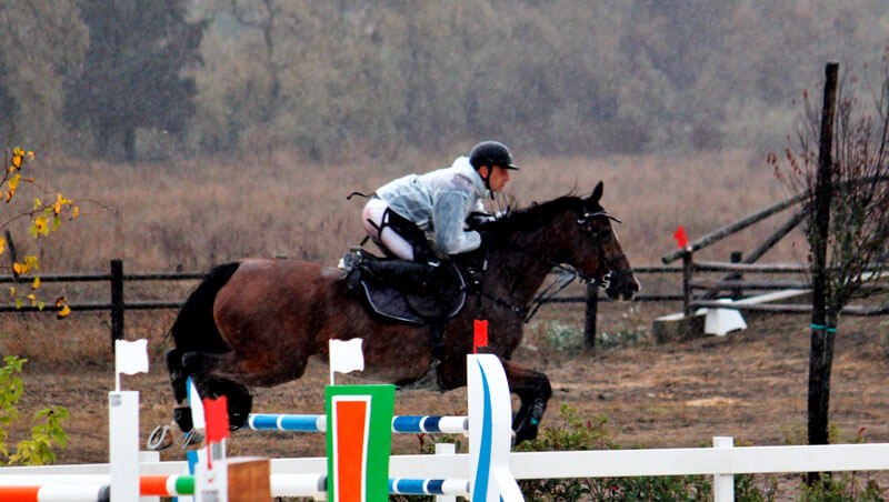 Alle sue spalle l’amazzone Barbara Suter su Timoteo, sella allevato in Sardegna da Salvatore Angioni.