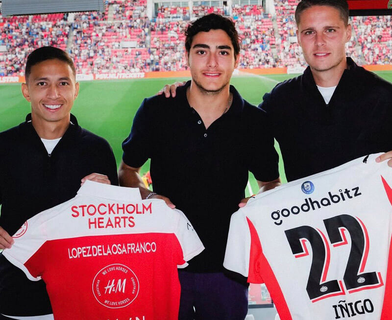 Durante l’intervallo è avvenuto lo scambio delle maglie: Íñigo ha ricevuto quella del PSV Eindhoven da Mauro Júnior e Joey Veerman, ricambiando con la sua divisa degli Stockholm Hearts.