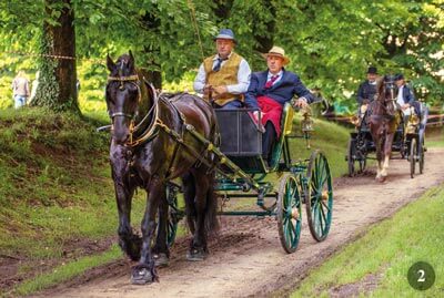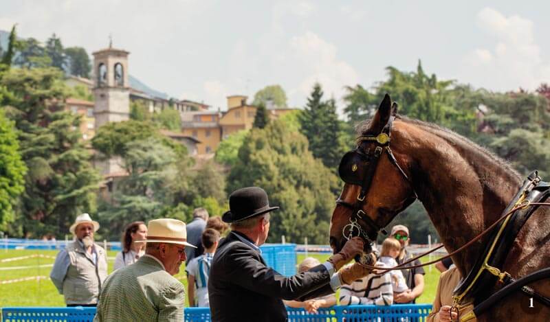 Il cocchiere “di casa” Mauro Zanchi, con cilindro e livrea, è alla guida di una Milord originale. Giuseppe Stefani, con al fianco Roberta Sergio, presenta una elegante Dottorina attaccata a singolo, mentre avanza il delizioso carro agricolo d’epoca guidato con abiti tipici da Charlotte Engholm, dall’Emilia Romagna, e attorno a cui si accalca il pubblico per fotografare il delizioso asinello con finimenti originali da lavoro.
