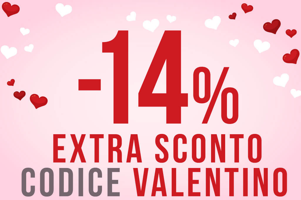 – 14% EXTRA SCONTO IN OCCASIONE DI SAN VALENTINO, codice: VALENTINO aggiungilo al carrello e sconti subito il regalo per il tuo Amore, senza spesa minima fino mercoledi 18 febbraio