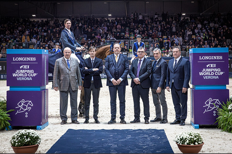 Nella foto d’apertura Francesca Ciriesi e Cape Coral. Nell’altra foto, con Ben Maher in premiazione Maurice Caillaud (giudice straniero), Matteo Sovera (Brand Manager Longines Italia), Federico Bricolo (Presidente Veronafiere), Maurizio Danese (AD Veronafiere), Marco Di Paola (Presidente FISE) e Riccardo Boricchi (Show Director Jumping Verona) – ph. FISE/Massimo Argenziano