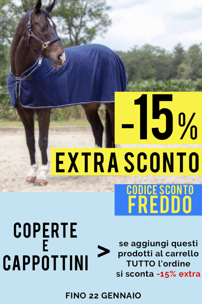 Ordina almeno 1 coperta per cavalli o un cappottino per cani, al carrello scrivi il codice sconto FREDDO e tutti i prodotti presenti nel tuo ordine si sconteranno subito -15% Extra