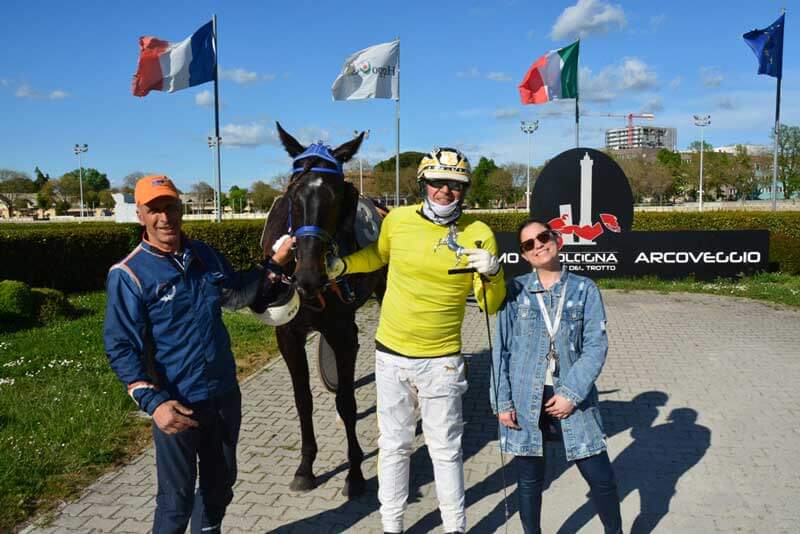 Successivamente il testimone è passato ai tre anni alle prese con la media distanza e la partenza con i nastri, sfida che ha sancito il primo successo con i nuovi colori dei veneti Zanetti di Eva Spritz, che brillantemente guidata da Gianvito D’Ambruoso ha chiuso il percorso in 1.18.6 precedendo Ecar Alor e Elena Selfs. Alla terza, successo per Estia Sl, eccellente prospetto di casa Sarzetto guidata da Carmine Piscuoglio e autrice di un convincente percorso al largo e che in 1.17.2 ha prevalso su Evita Nobel ed Electra Laksmy. Vincitori anche sabato 15 aprile a Treviso, Matteo Zaccherini e Biscuit Del Nord, nel primo confronto riservato ai gentlemen della giornata, hanno concesso brillante replica in Via di Corticella dominando sugli avversari in 1.15.5 dopo aver ottenuto il via libera da Zairon, poi secondo, mentre ad ampio distacco Allegro La Sol ha completato il podio.