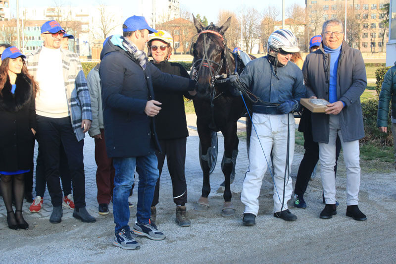 Domenica 5 marzo l’ippodromo di Bologna è stato teatro di un divertente convegno nel corso del quale si è festeggiata anche la rilevante vittoria in terra francese del portacolori felsineo Cocco BFC, cinque anni di proprietà del team del quale fanno parte Roberto Bonvicini, Luca Finotti e Christian Dell’Aquila, che il 29 gennaio a Vincennes nel giorno dell’Amérique si è aggiudicato un’ importante prova internazionale guidato dal top driver transalpino Franck Ouvrie.