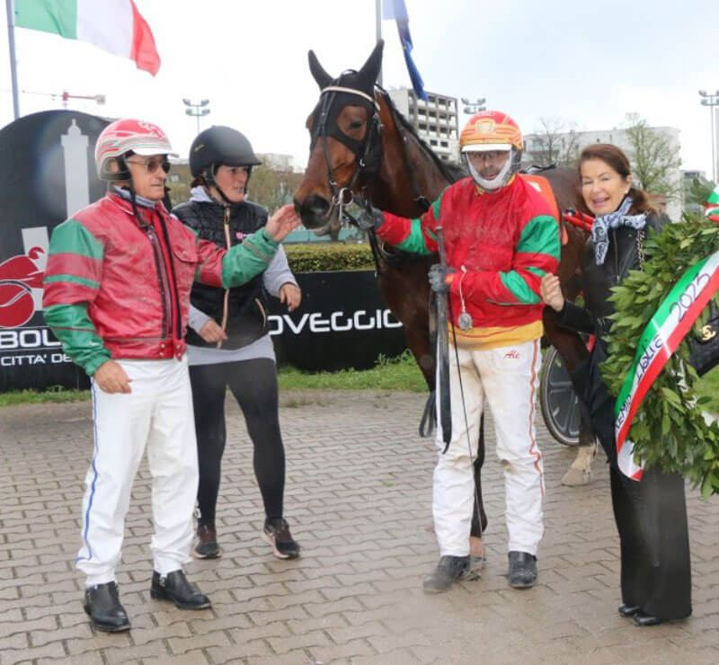 Giornata di sport, solidarietà ed intrattenimento quella andata in scena domenica 2 aprile all’ippodromo di Bologna incentrata sul Gran Premio Italia, prestigiosa corsa sulla media distanza che ha visto protagonisti i migliori indigeni di tre anni nelle divisioni maschile e femminile. Nonostante il clima dai connotati autunnali entrambe le prove hanno regalato emozioni e spettacolo, con molti appassionati presenti nel parterre. Il Gran Premio Italia Maschi, collocato come quinto appuntamento agonistico ha visto emergere, dopo un grintoso percorso esterno, l’allievo di Alessandro Gocciadoro Everything Bi, preminente alla media di 1.15.7 nei confronti dell’estremo outsider della contesa Espada e di Eraldo Jet, dei quali si sentirà parlare spesso nel corso della lunga stagione che accompagnerà la generazione all’appuntamento con il Derby. Quarto l’iniziale leader della corsa, Equipe Della Casa e quinto il favorito Epcot Bi, prestazione invece deludente per gli attesi pupilli di Mauro Baroncini, Espresso Italia e Escobar Fi. Alla settima corsa sono scese in campo le femmine in un’Italia Filly che sulla carta pareva palcoscenico ideale per premiare le ambizioni di primato di Elettra D’Esi ed El Alamein, ma che invece sul finale ha premiato la beniamina locale Estasi Di No grazie alla quale il driver modenese Marco Stefani ha vinto il suo primo Gran Premio Italia, regalando la gioia al trainer Francesco Alessandrini e alla proprietaria Laura Baldi. La vincitrice al tempo di 1.16.4 ha preceduto Euphoria Bi ed Emily Lp.