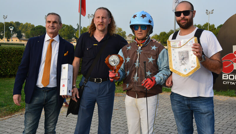 Nell’intervallo tra la quarta e la quinta corsa il driver campano Vincenzo Piscuoglio dell’Annunziata, recente vincitore dell’International Trot in sulky a Cokstile, è stato accolto nel parterre delll’Arcoveggio dalla dirigenza e dal pubblico presente per festeggiare l’importante successo conseguito.