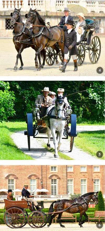 E ancora un attacco all’eveque o Potencia (3 cavalli in parallelo) e 5 Tiri a quattro, una à la Calesera ornato di nappe (attacco tipico dell’epoca nella regione della Baja spagnola dell’Andalusia).