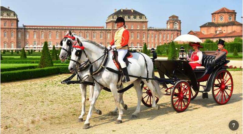 Come in un dipinto di costume datato metà dell’Ottocento o primi del Novecento, nella cornice unica della Reggia di Venaria, si sono riadunate 28 carrozze tradizionali con equipaggi adeguatamente abbigliati secondo lo stile dell’epoca, provenienti dalla Svizzera, dalla Germania e dalla Spagna, oltre che da vari luoghi d’Italia.