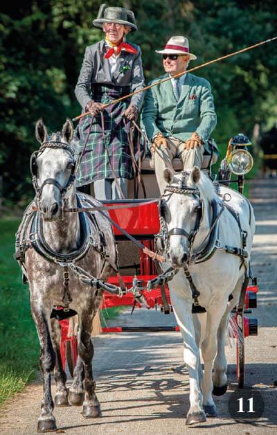 Una coppia di cavalli KWPN grigi e castani, attaccati a un Dogcart di Morel di Parigi sono alle redini di Dirk e Yvonne Schalkers. Mentre John White, del New Jersey, che annualmente affronta un viaggio transatlantico e trova pronto il suo fedele team di cavalli Hannover, Holsteiner e KWPN, per la Route de Lorraine ha portato un Break della Brewster di New York. A bordo, in volo dalla Florida, Melissa Warner, che raramente si è persa una Route de Lorraine.