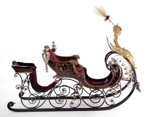 Disegni di slitte simili, infatti, realizzati a Parigi circolarono successivamente negli ambienti dei costruttoei di carrozze. Eugène Kauffmann, al quale fu ordinata la slitta nel 1891, potrebbe averla conosciuta così.