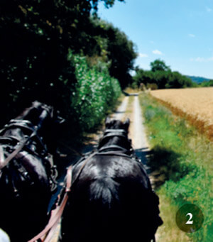 Partenza da Terontola, nel comune di Cortona (AR), Circolo Ippico Bartolomania, dove un’ampia carrozza Break Wagonette, condotta da un driver d’eccezione, Daniele Cardullo, Presidente dell’Associazione Eponaliacavalli in Agricoltura, attaccata ad una pariglia di splendidi e tranquilli Murgesi, di buon ora ha imbarcato l’equipaggio, composto da una restauratrice delle carrozze del Quirinale, suo marito musicista, un bambino di 10 anni, suo figlio, e la scrivente redattrice della presente cronaca. Ritmi cadenzati per paesaggi umbro-toscani inondati dal grano maturo, dai girasoli rivolti verso il sole, da mais, ortaggi, silenzio rotto solo dalla musica degli zoccoli dei cavalli che, a tempo, scrivevano note musicali sul terreno. Uccelli da passo sui piccoli fiumi e i corsi d’acqua, caprioli curiosi che da lontano guardavano chi passava.