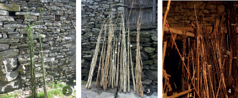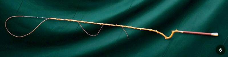 In origine era la frusta dei giorni di pioggia, perché le gocce scorrevano verso il basso fino a quando trovavano la piega e non bagnavano il manico, è poi diventata una frusta particolare usata per la guida di carrozze sportive. Il trovare i bastoni adatti è solo l’inizio, e sono un po’ come il buon vino, dovranno aspettare dai 3 ai 5 anni per una stagionatura lenta e naturale, più le fibre sono compatte più tempo necessitano per la stagionatura. Non ci sono scorciatoie, e non tutti i legni arrivano alla fine ma possono rovinarsi prima e finire nel camino. Ci sono alcuni modi di conservare i bastoni durante l’essicazione, si possono legare vicino a un supporto rigido e diritto, o se sono tanti in piccoli fasci stretti tra di loro, in questo modo vengono appesi per evitare brutte curvature.