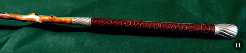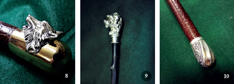 Il colore delle parti in metallo della frusta deve essere simile al ferramenta della carrozza e alle fibbie del finimento quindi materiali “bianco” o “giallo”, io uso solo argento o alpacca per il colore “bianco” e ottone dorato per il “giallo”. I maestri incisori che ho conosciuto nel tempo, aggiungono la loro arte per un tocco di classe.