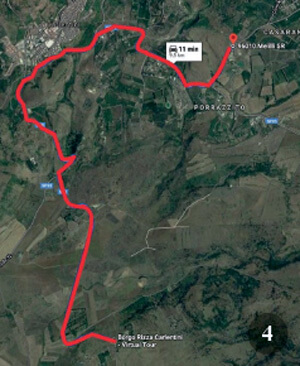 Stamattina, sulla strada provinciale il traffico della domenica è davvero ridotto, solo qualche auto che ci sorpassa prudentemente, uno sparuto gruppo di ciclisti ci saluta; lungo la discesa della “Mannara”, Nino sembra avvertire la responsabilità della sicurezza dell’attacco e rimane ben concentrato a frenare; sono solo poche centinaia di metri, prima di iniziare a trottare su una leggera pendenza, che dopo circa 4 chilometri ci porta ai piedi del monte Pancali, alle porte di Carlentini, cittadina storica fondata dal Carlo V. Il calore del sole non si avverte ancora e questa prima parte del percorso si è rivelata ideale per far raggiungere al cavallo la giusta temperatura e spezzare il fiato; vorrei fermarmi al solito bar per un caffè, una raviola ripiena di ricotta, ma questi non sono tempi… Ora la salita, quella vera, incombe e non vogliamo farci sorprendere dal caldo nel pieno della fatica.