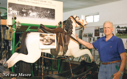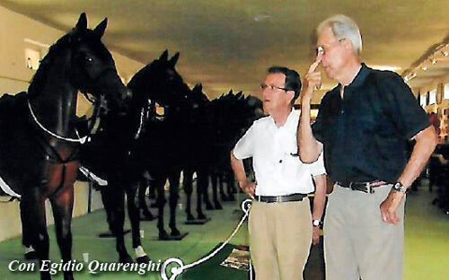 «Venni in Italia, mi sposai e organizzai un maneggio ed un’azienda agricola. Successivamente andai per un periodo in Portogallo da Nuño Oliveira, numero uno nell’equitazione e rimasi là un anno: stare da lui fu una scuola straordinaria. Era eccezionale con i cavalli! Nel suo centro la carrozza era sempre pronta per i trasferimenti, non c’era necessità del taxi, si andava in carrozza ed io la conducevo. Nacque lì l’idea del Museo per raccogliere e mostrare, esposte su modelli di cavalli a grandezza naturale, tutte le bardature utilizzate dai vari eserciti. In quel periodo l’esercito portoghese veniva motorizzato ed, allora, le bardature utilizzate dai reggimenti a cavallo venivano scartate. Si trattava della selleria di almeno mille cavalli, ne comprai un buon numero e, in seguito, scambiai le bardature portoghesi con bardature militari di altri paesi, in modo da poterne esporre varie fogge in quello che sarebbe diventato il mio Museo. E cercai anche i sellai che le avevano prodotte per la necessaria documentazione […].»
