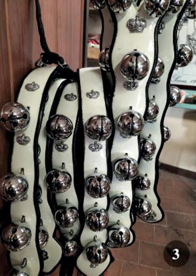 I cavalli indossano tre tipi diversi di sonagliere, che sono state lanciate nella seconda metà del secolo scorso dalla Selleria Moirano, che è sempre stata un punto di riferimento nel territorio.