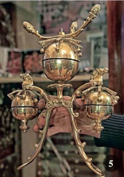 5. Sonagliera in ottone da sellino a tre braccia con doppie coppe e guarnizioni svitabili