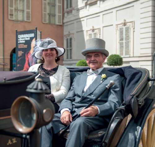 Fra gli attacchi schierati in Piazzetta Reale per la Presentazione delle carrozze notiamo quello di Ugo Cei, un pregiato Mail Phaeton, a firma Bouvaret Fre, dalle grandi ruote rosse in tinta con l’abito della dama, attaccato a una pariglia di spagnoli. Un gran bel Brougham di Belloni è condotto dal cocchiere in perfetta livrea Alfio Biasibetti e ancora Uberto Bernardo Alma con Milord del 1890 del carrozziere torinese Adriano Rosso e Figlio, ancora conservato in perfette condizioni senza nessun restauro.