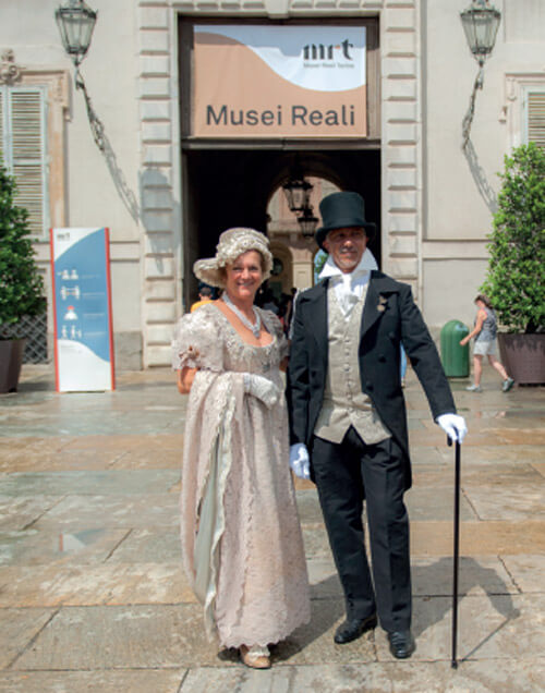 Intanto, uscendo fra le statue equestri dei Dioscuri, giungevano innanzi a Palazzo Madama il Vis à vis della carrozzeria Revelli (TO) della seconda metà dell’800, perfettamente conservato senza alcun restauro, alle redini Martin Adamo e, quindi, l’imponente Duc de Dame di Andrea Lenarduzzi e Marta Ceva, con guida dall’interno, firmato Cesare Sala (TO) e risalente alla prima metà dell’800.