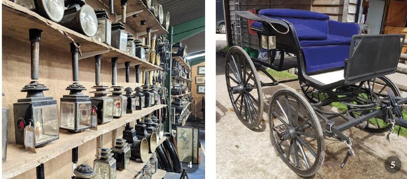 - La sua collezione comprende anche elementi da carrozza originali, come questa serie di fanali.