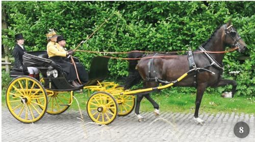 La “svolta” degli Hand divenne definitiva dopo aver letto un reportage sul primo Attelage de Tradition a Picton Castle, in Galles. Il fascino di una sede lontana, il prestigio di una località reale e un evento godibile da tutta la famiglia erano irresistibili. Il loro debutto fu un trionfo di entusiasmo; Russell, Pat e la famiglia celebrarono il risultato alle redini di una coppia di Frisoni attaccata a un bel Phaeton nuovo con la capote. Tuttavia, l’esperienza li portò a una rapida consapevolezza. Secondo il Regolamento AIAT, le riproduzioni moderne vengono penalizzate a favore dei veicoli originali d’epoca costruiti prima del 1945.