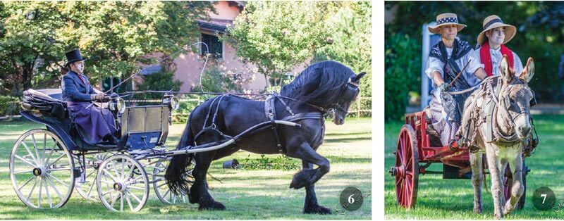 Delegato Tecnico AIAT Enzo Calvi. Ha aperto il Concorso il delizioso attacco da lavoro presentato da Charlotte Engholm, proveniente dalla provincia di Parma, che si presentava con un carretto agricolo originale e un asinello con finimento d’epoca. Il carretto veniva usato per trasporto di prodotti ortofrutticoli, di bidoni di latte o piccoli attrezzi , A cassetta due gentili signore in abiti da campagna: gonne lunghe, grembiuli, camicie bianche e cappelli in paglia. Questo attacco, proprio in apertura del Concorso, ha voluto ricordare la tradizione agricola del territorio in cui è sita la Lodovica, che era casa colonica dei contadini della famiglia Borromeo.